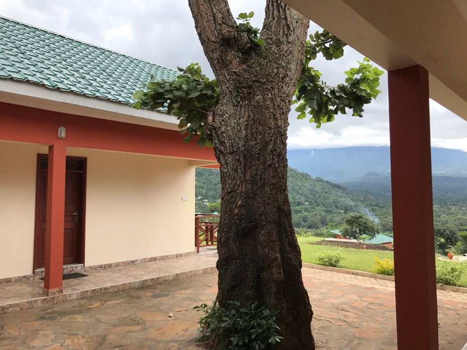 As you can see, our first day was full of lots of fun adventures!   Our tour guide company dropped us off at our hotel around 5:30 PM. This is the view of Moshi out of the window in our room. IMG_0094The room was very clean and this was the best night of sleep I have in the past 2 months. IMG_0112IMG_0113Since we know how to be safe while in TZ, we decided it would be ok to venture out on our own for a little walk and to find dinner. We came across the best Italian restaurant EVER! We shared two pizzas and a slice of chocolate cake.  We’ve learned that eating out takes a long time here in TZ so we asked for our cake first!!IMG_0096Here are pictures of the kitchen and outdoor eating area of the restaurant. IMG_0097