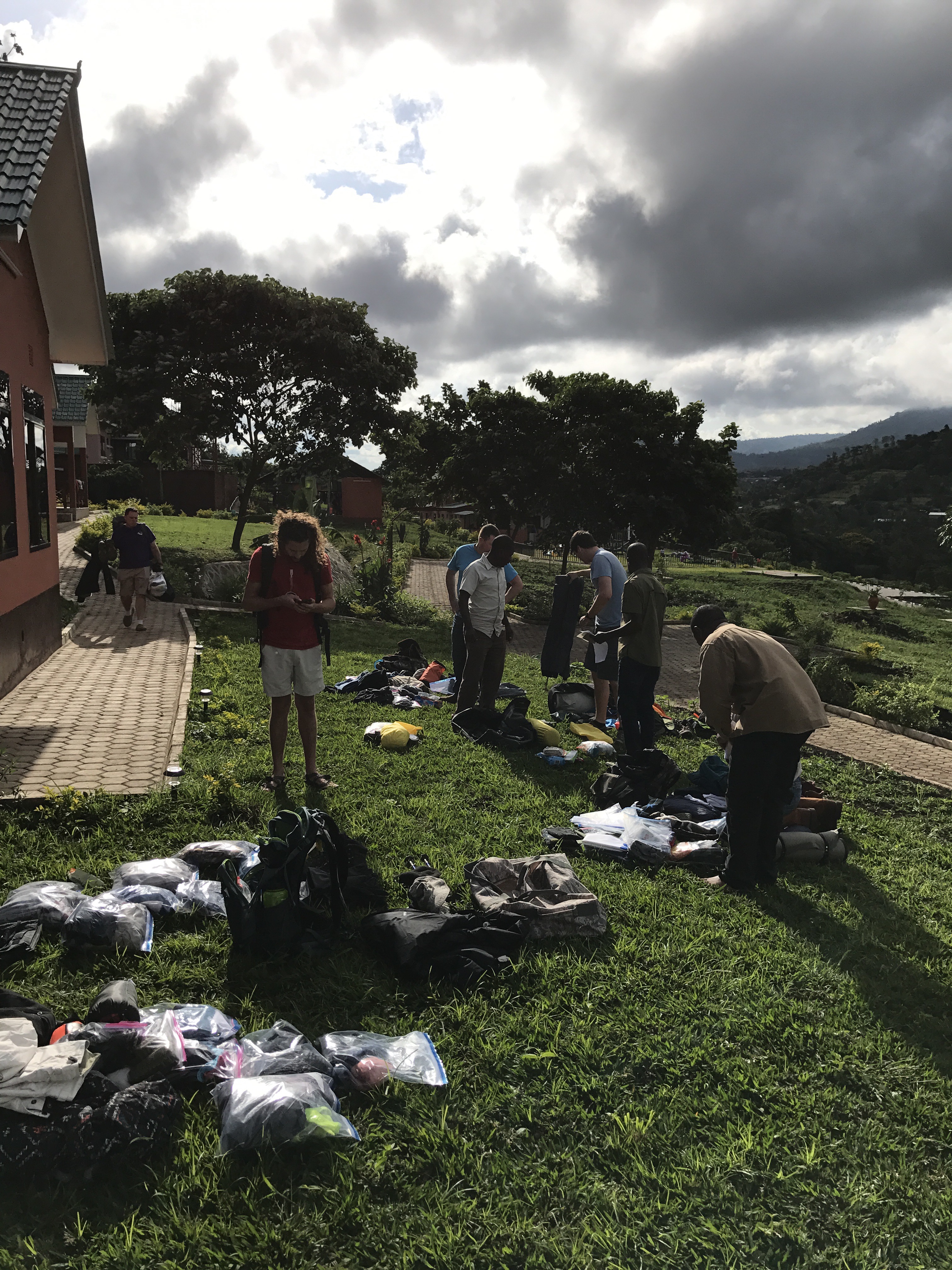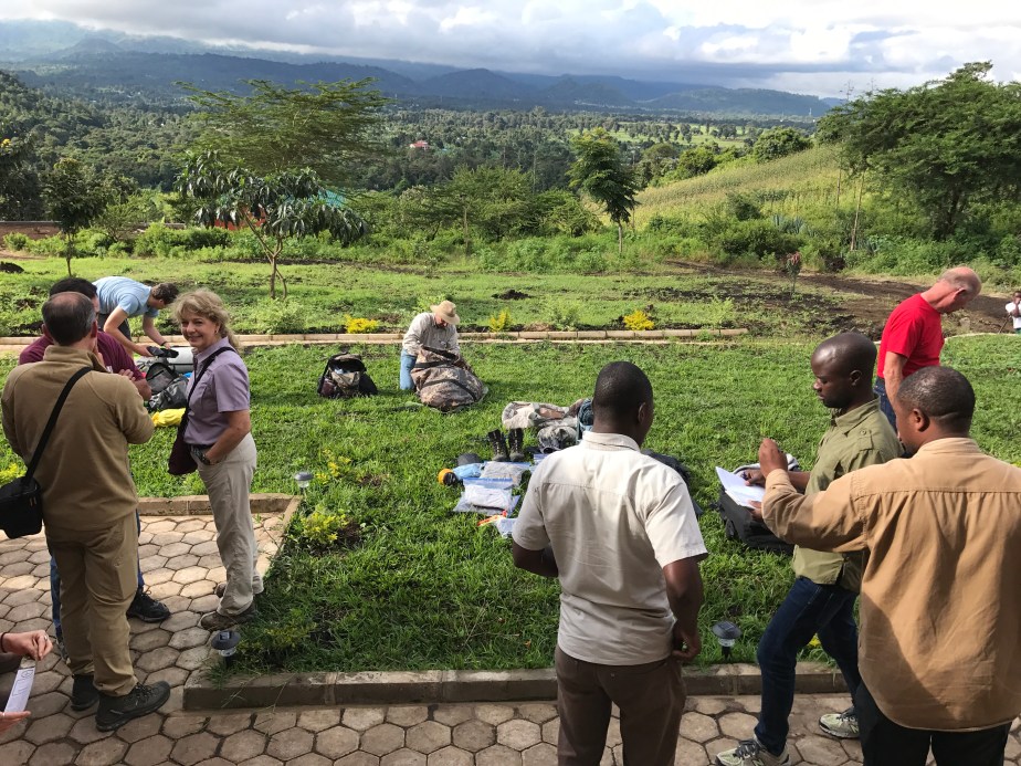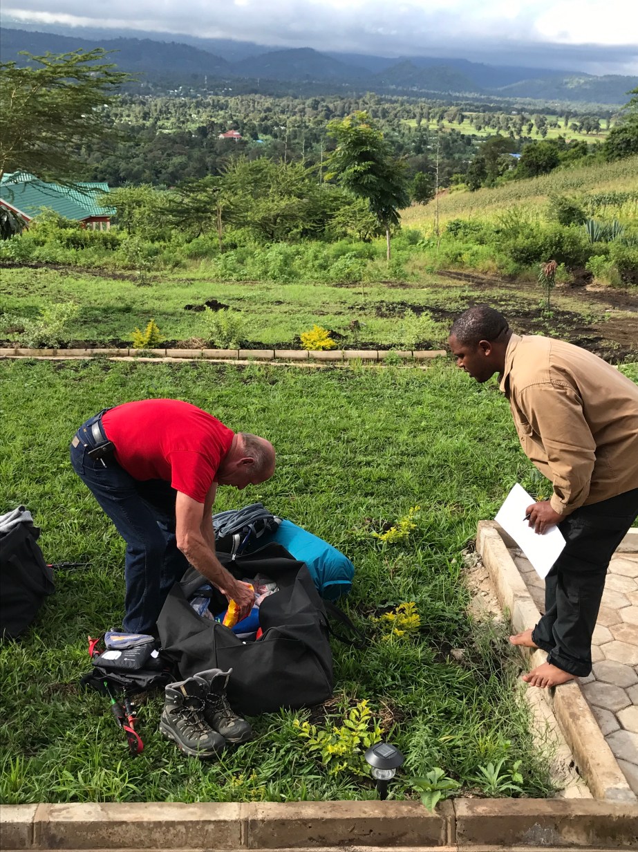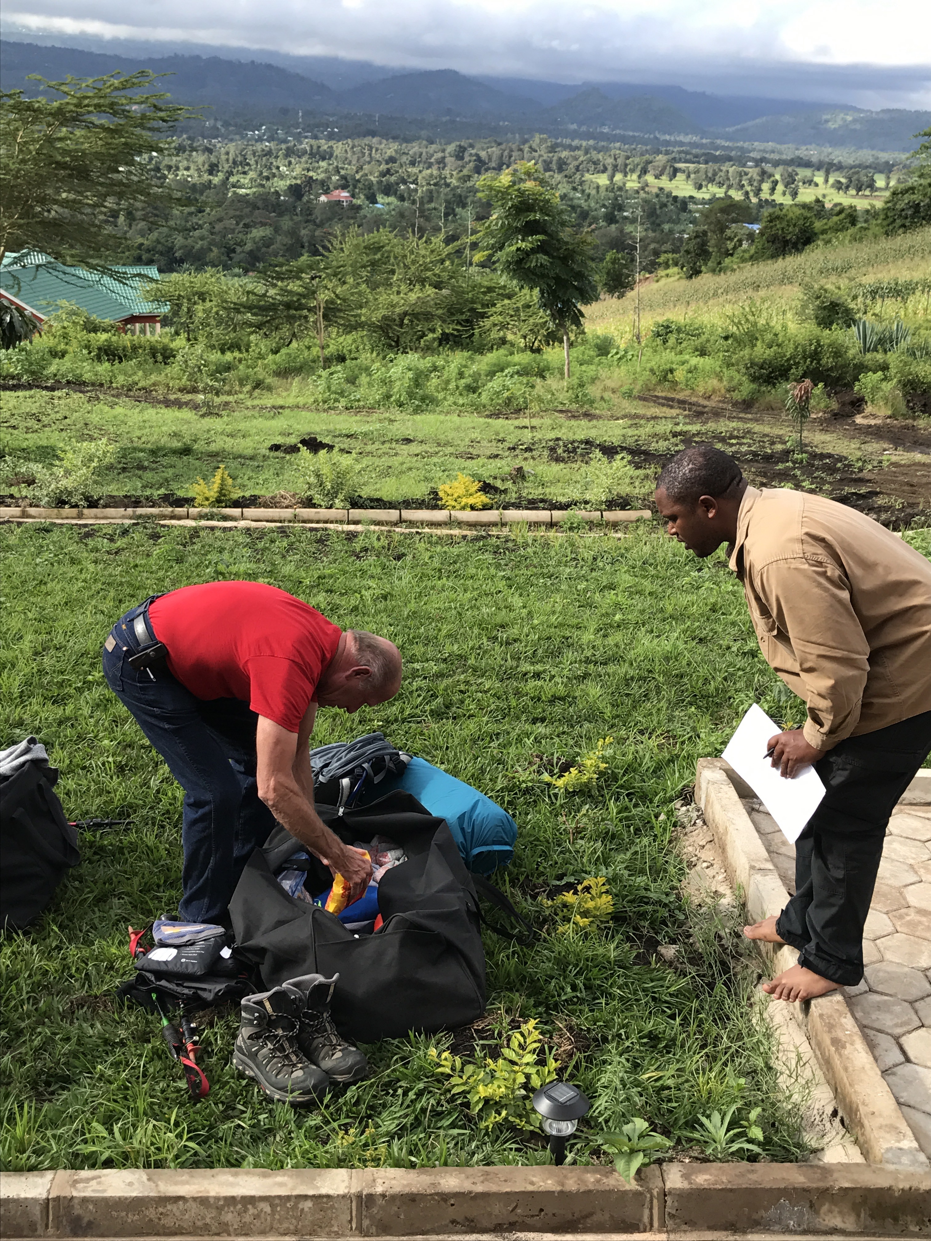 We have 20 volunteers climbing Kili starting 6-14. Here they are doing a gear check before they could hit the mountain in the morning!